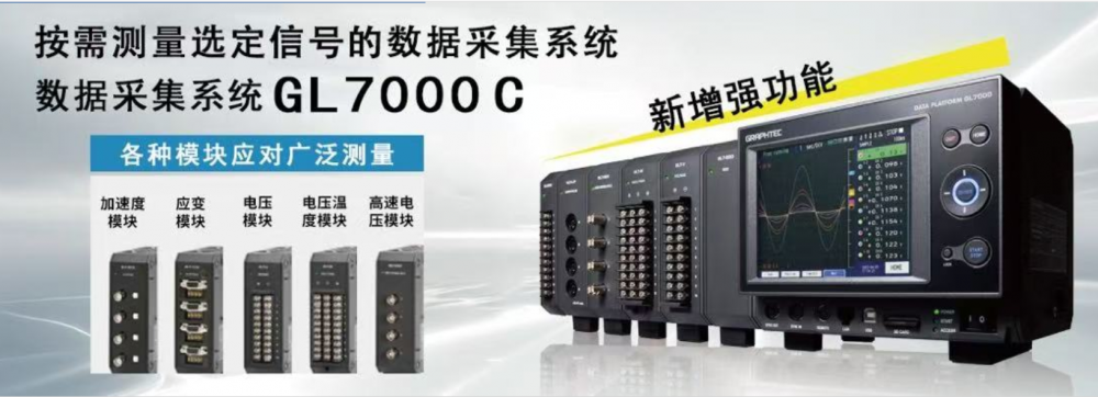 图技GRAPHTE GL7000C高速采样存储记录仪可通过模块的扩张 对应各种测试需求,多可安装10台模块增设也保持取样速度,通过增加连接需要的输入模块,可根据目的进行各种测量。多安装10台放大器模块,可进行112ch的多通道测量。